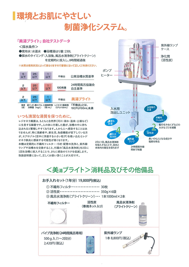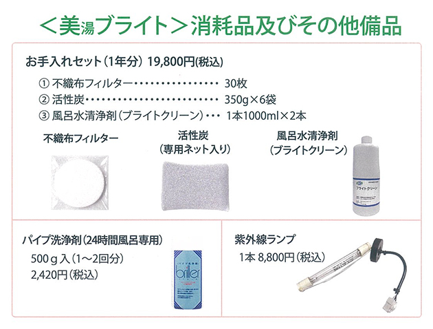「美湯ブライト」消耗品及びその他備品