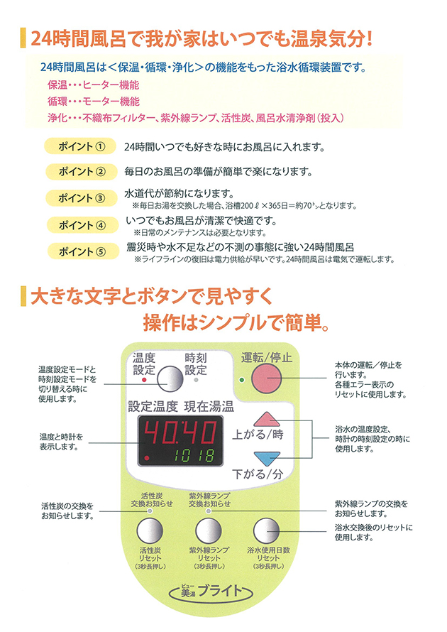 | 【商品名】 | 家庭用循環温浴器 美湯ブライト |