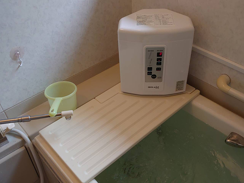 | 【お手入れ内容】 | 浴水交換:1週間に一度 浴槽壁面の汚れとヌメリ除去:毎日入浴後 トップフィルターの洗浄:毎日入浴後 ろ過フィルターの交換:「LH」表示時(約3ヶ月に一度) 配管の洗浄:6ケ月に一度 浴槽の洗浄:浴水交換時と配管洗浄時 |