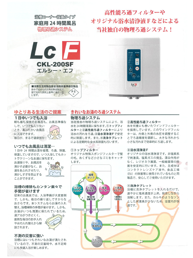 | 【商品名】 | 家庭用循環温浴器 LcF(エル・シー・エフ) |